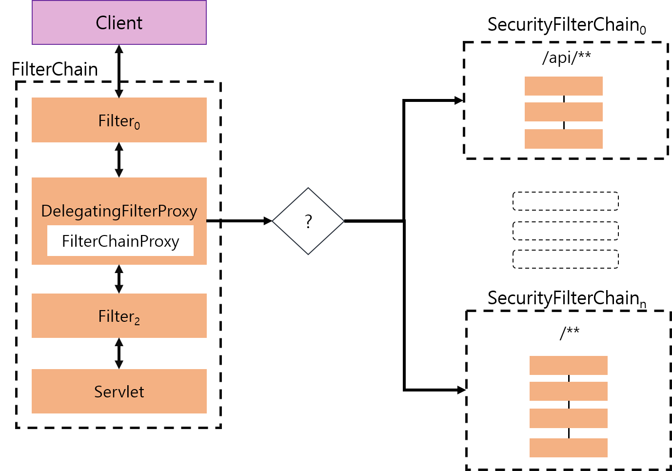 The Security Filters are inserted into the FilterChainProxy with the SecurityFilterChain API. Those filters can be used for a number of different purposes, like exploit protection, authentication, authorization, and more. The filters are executed in a spec